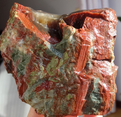 硅化木质地坚硬、颜色鲜艳,又被称为“树化玉”或“木玛瑙”。《神农本草经》、《本草纲目》中早有记载:玉石具有“除中热、润心肺、助声喉、滋毛发、疏血脉”等疗效。