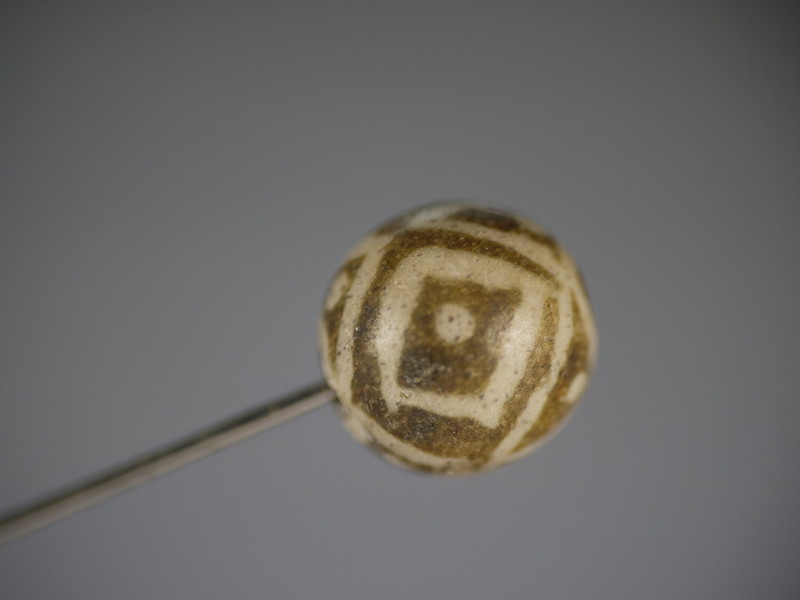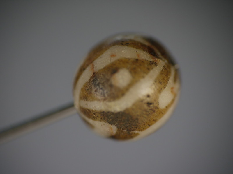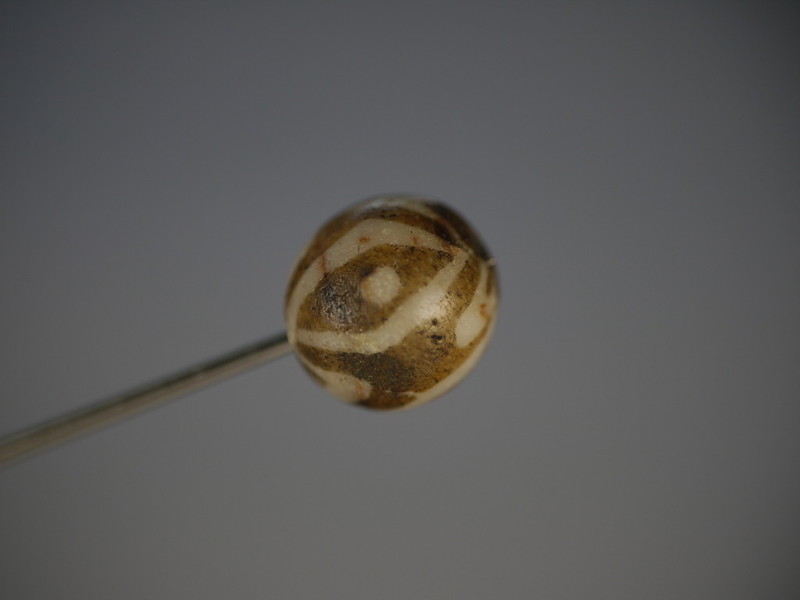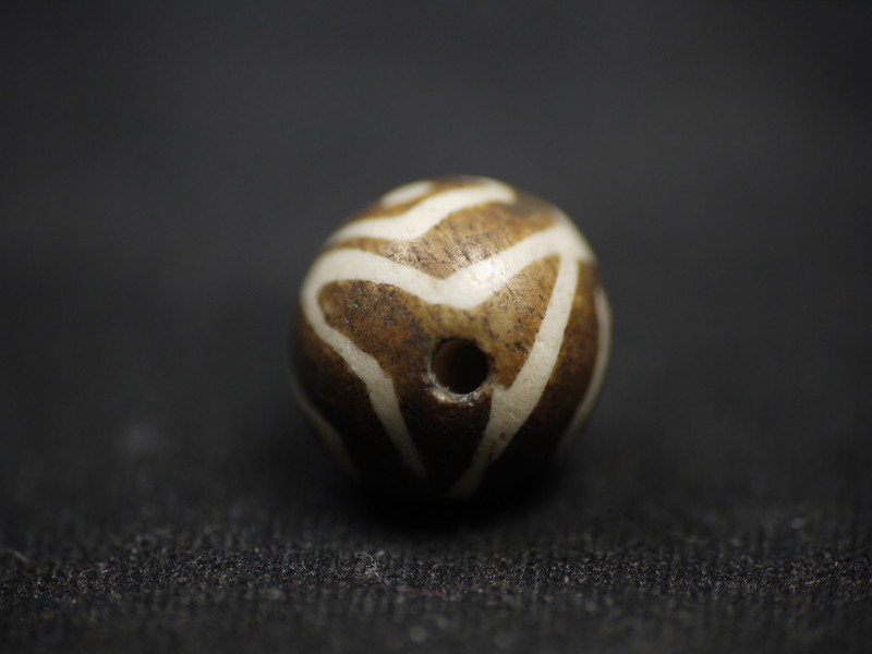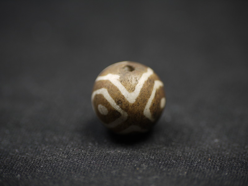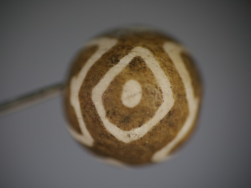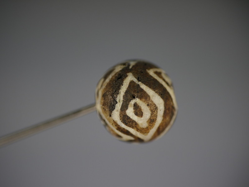 9。球形,用白色线条(黑色在中间左右的钻石形状的带的顶部和底部的两条水平线;12毫米直径):Maingmaw(未发表发掘报告);出发考古