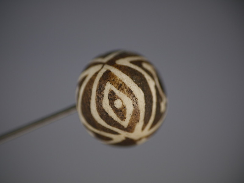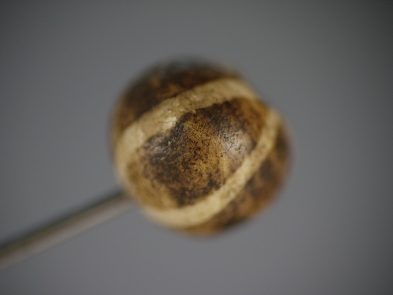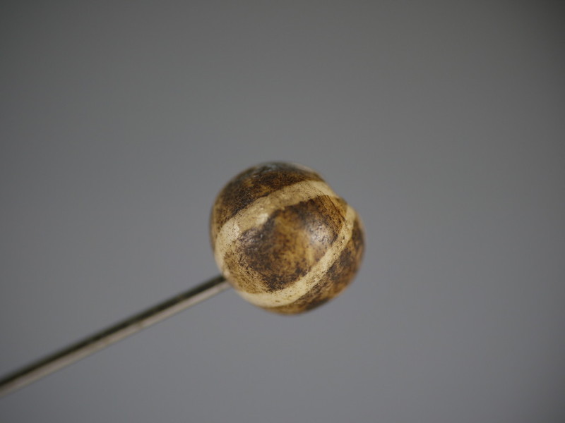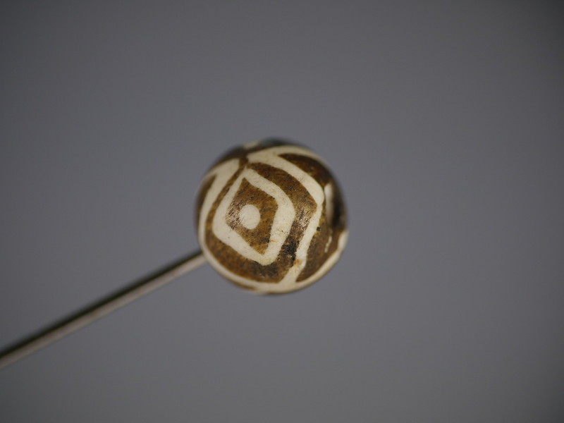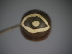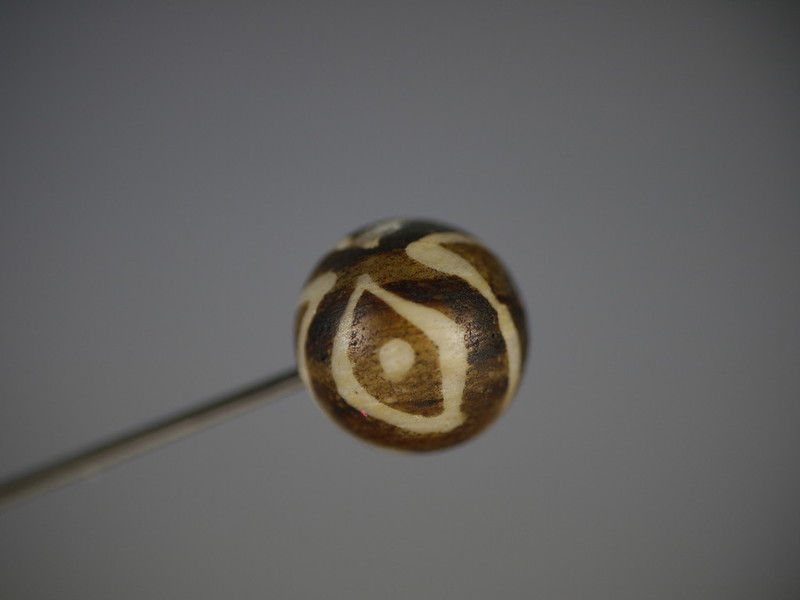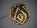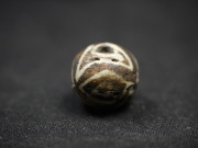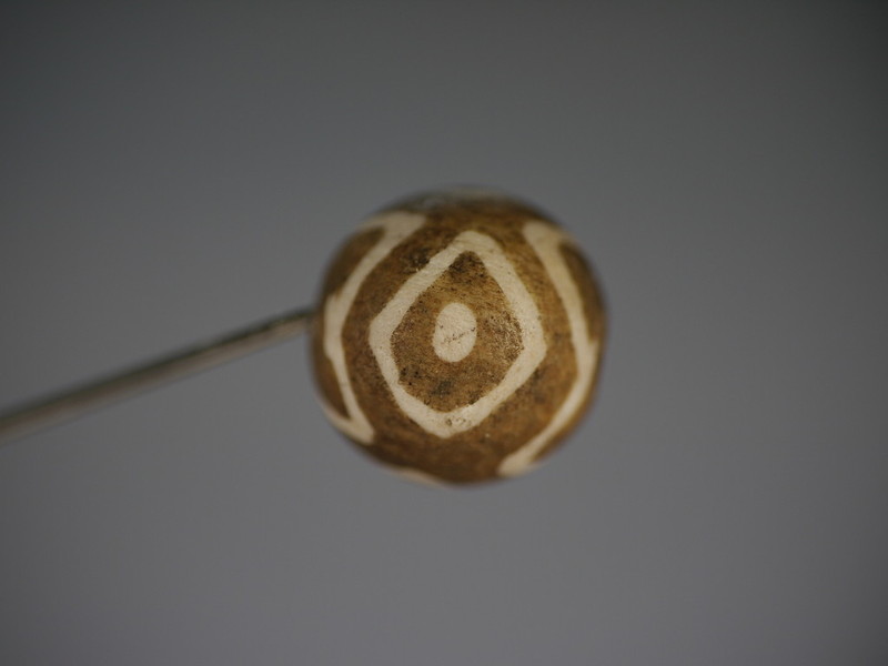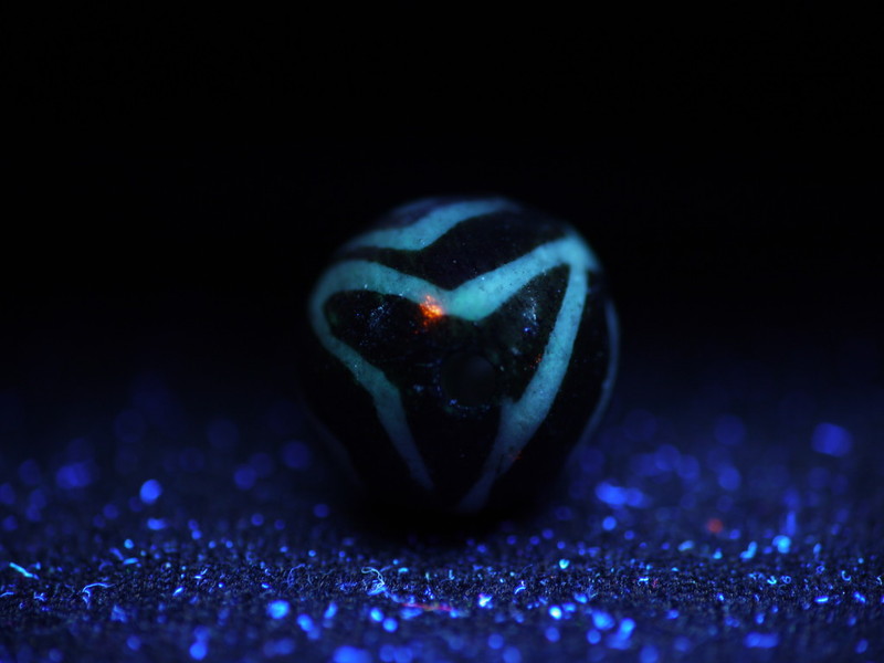 9。球形,用白色线条(黑色在中间左右的钻石形状的带的顶部和底部的两条水平线;12毫米直径):Maingmaw(未发表发掘报告);出发考古