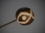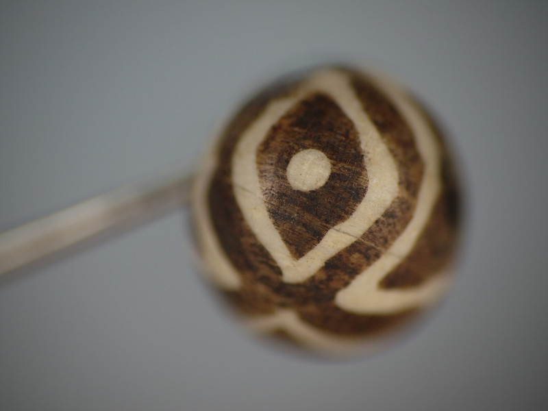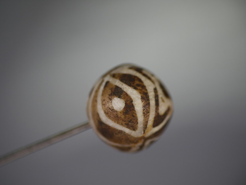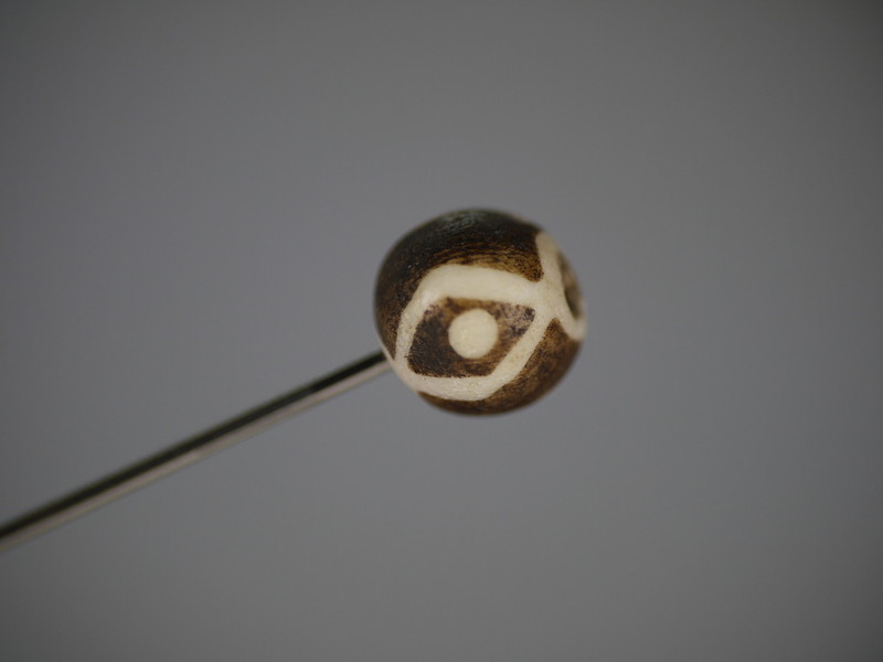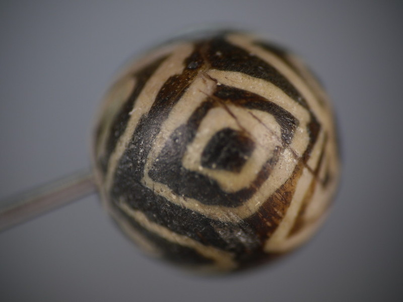 9。球形,用白色线条(黑色在中间左右的钻石形状的带的顶部和底部的两条水平线;12毫米直径):Maingmaw(未发表发掘报告);出发考古