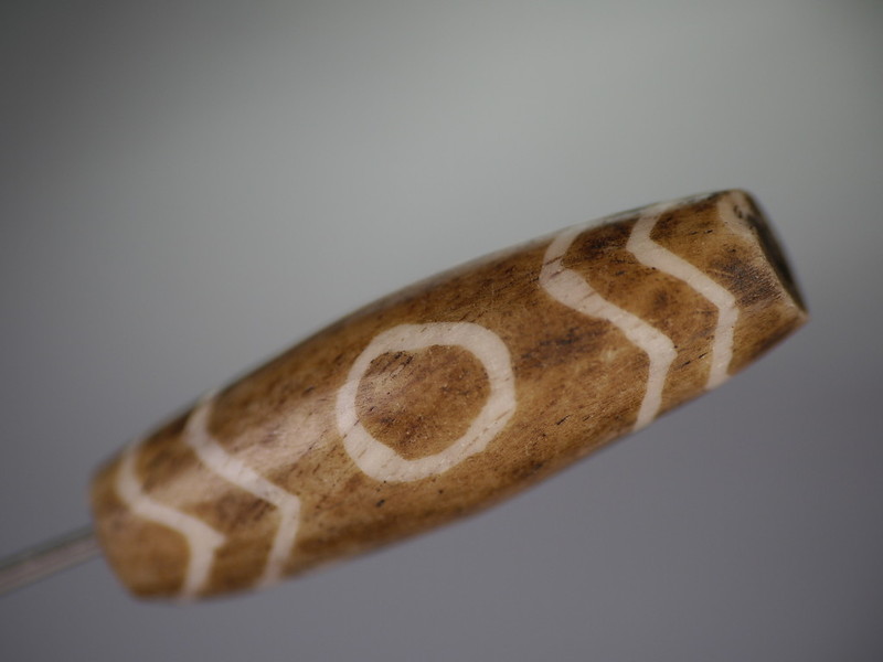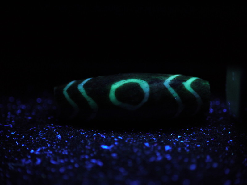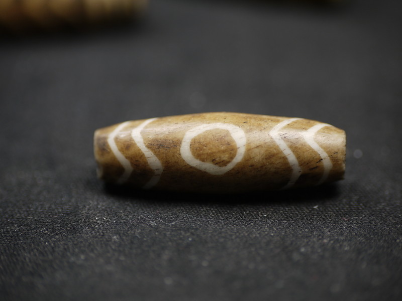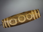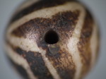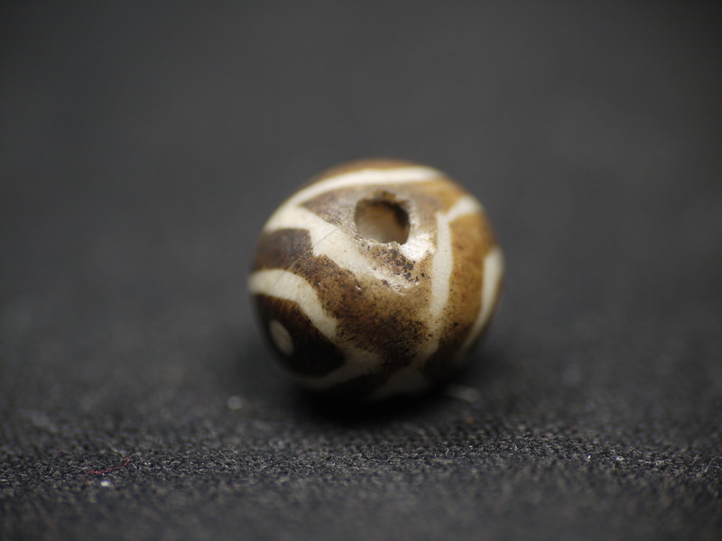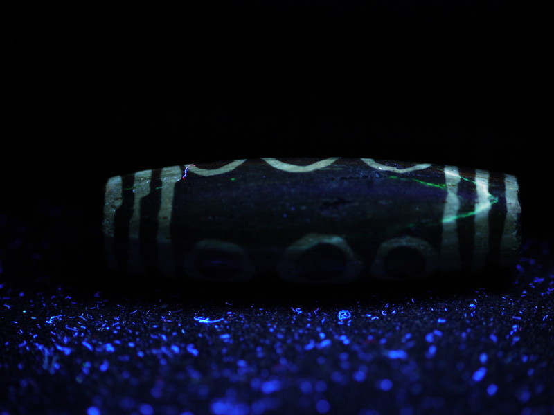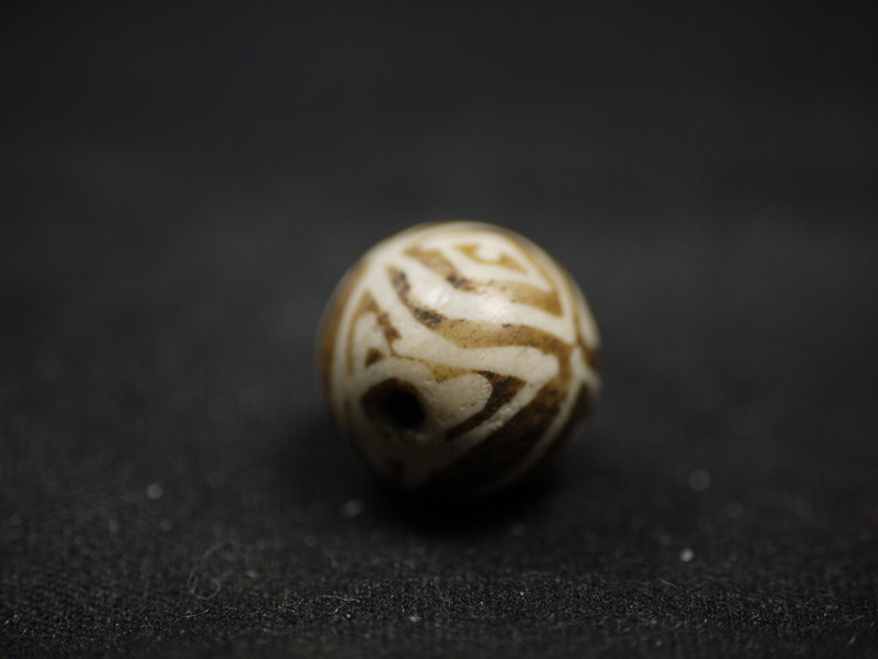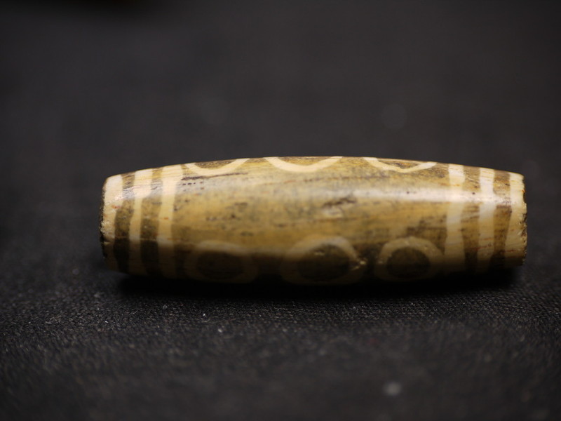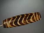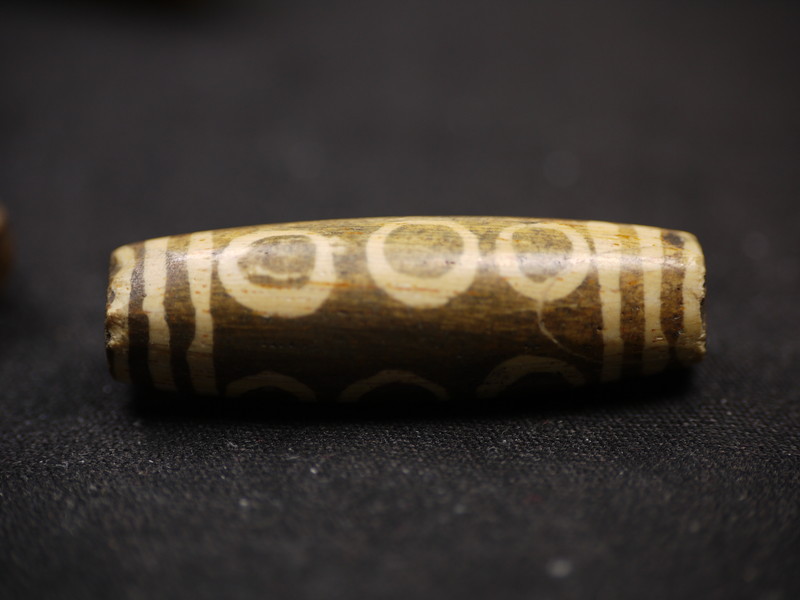 30。桶,白线(黑色,两端各有两条线,三锯齿形线在中间,30毫米长度):Maingmaw记录现场实地调查过程中。无螺纹孔。此珠,老虎尾巴的设计,被认为是最有价值的,如果三角形触摸端线。一些例子已经痊愈从Srikshetra以及Maingmaw