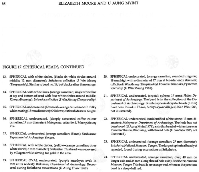 13。球形的,带白色圆圈,(黑色,6个白色圆圈的中间,直径12毫米):Srikshetra收集吴温貌(Tampawaddy)。珠没有类似。 14,但黑色,而不是橙色。