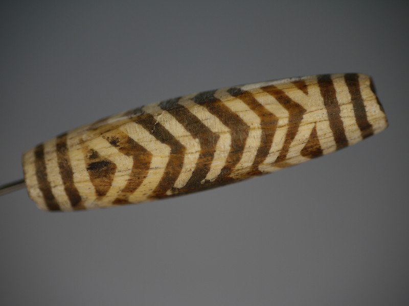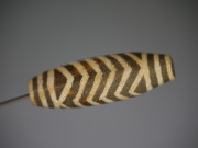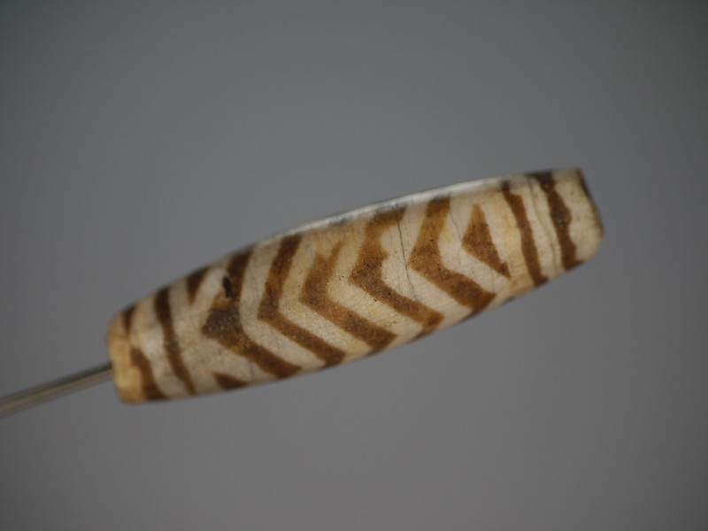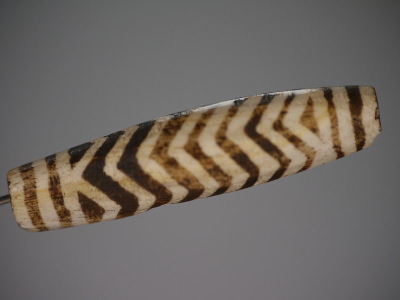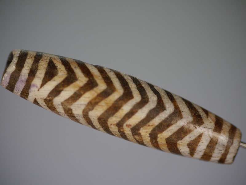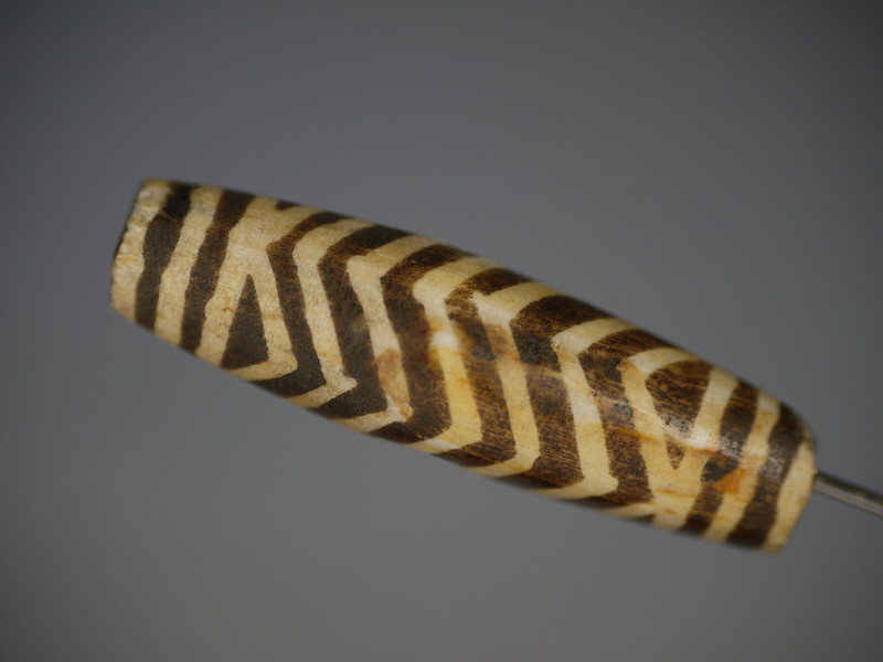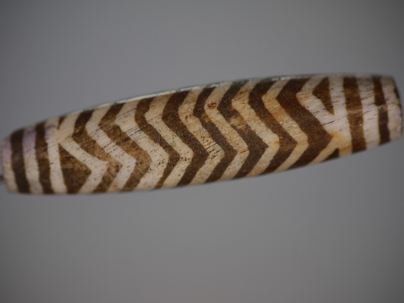 珠子上蚀刻的图案非常精细,这种设计在那一时期的珠子中极其罕见的。珠子的材质是已经高度玉化的化石。如果您想知道什么是真正的邦提克珠,这个就是最好标本