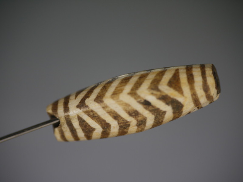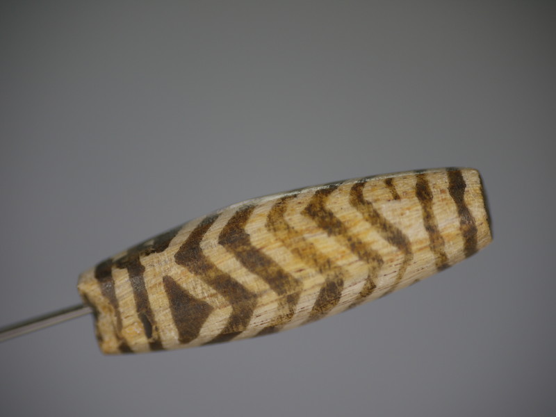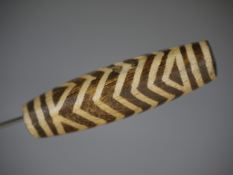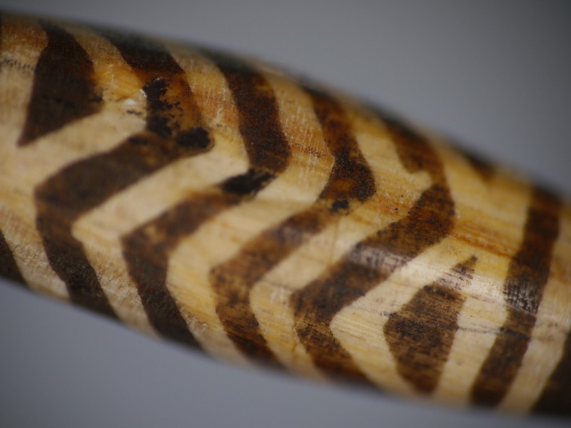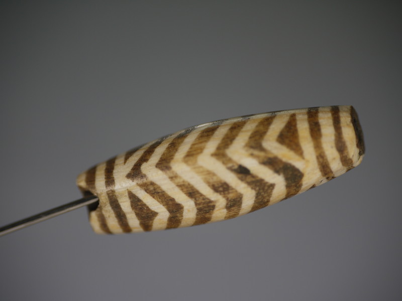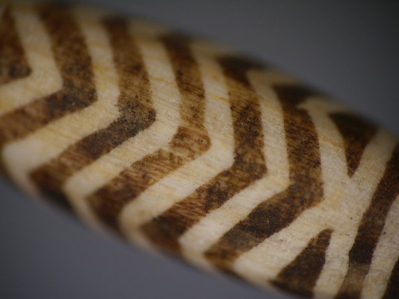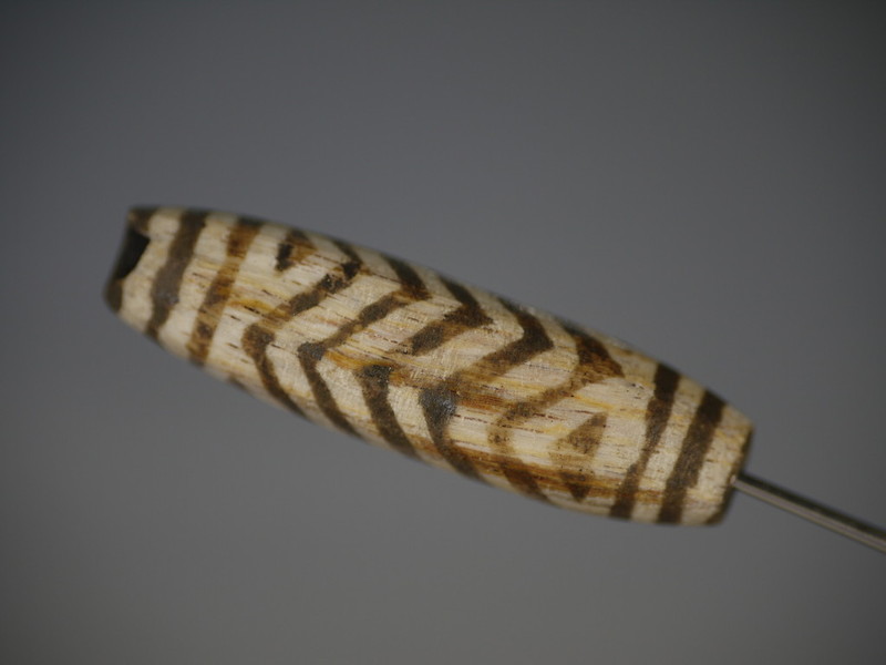 珠子上蚀刻的图案非常精细,这种设计在那一时期的珠子中极其罕见的。珠子的材质是已经高度玉化的化石。如果您想知道什么是真正的邦提克珠,这个就是最好标本