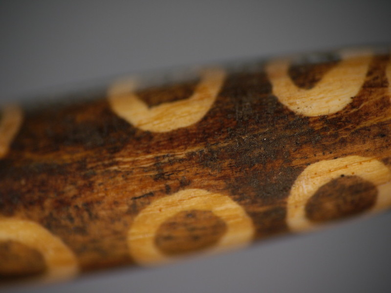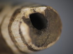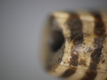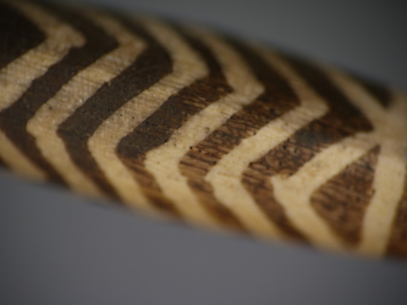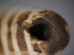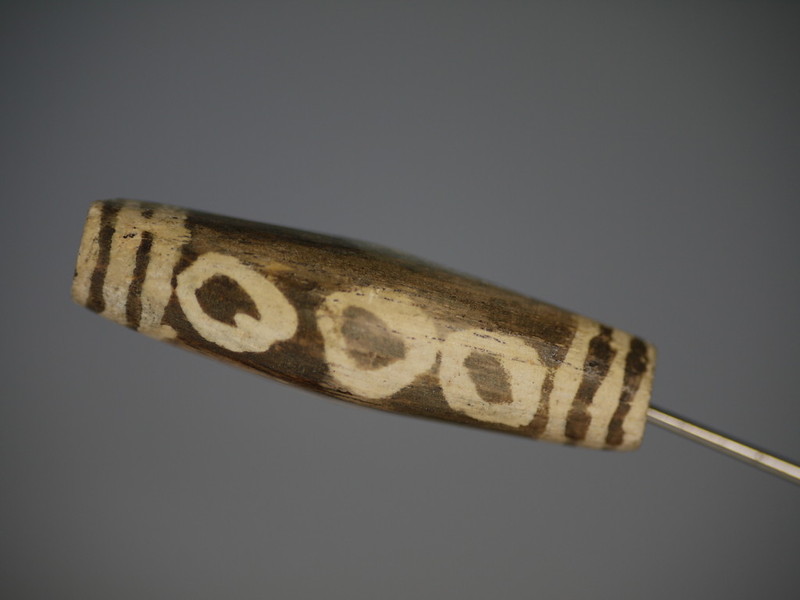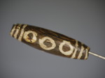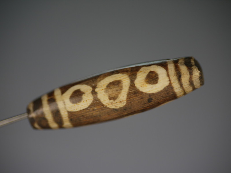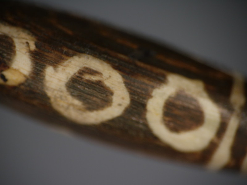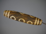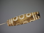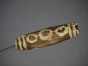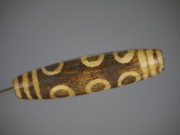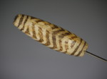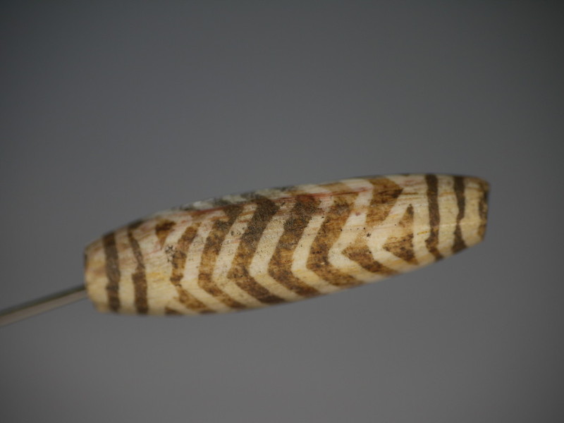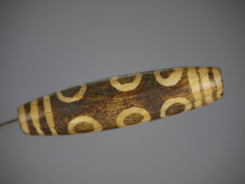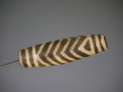 30。桶,白线(黑色,两端各有两条线,三锯齿形线在中间,30毫米长度):Maingmaw记录现场实地调查过程中。无螺纹孔。此珠,老虎尾巴的设计,被认为是最有价值的,如果三角形触摸端线。一些例子已经痊愈从Srikshetra以及Maingmaw