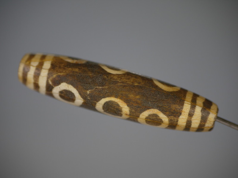 珠子上蚀刻的图案非常精细,这种设计在那一时期的珠子中极其罕见的。珠子的材质是已经高度玉化的化石。如果您想知道什么是真正的邦提克珠,这个就是最好标本