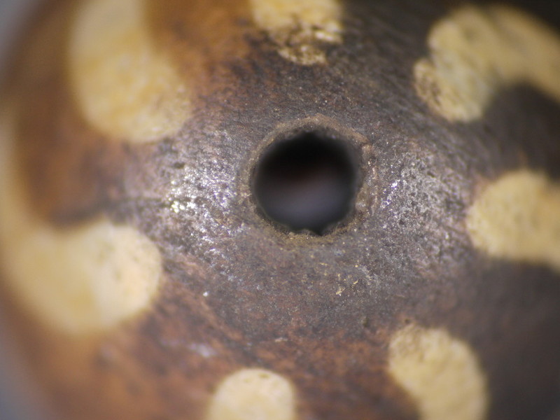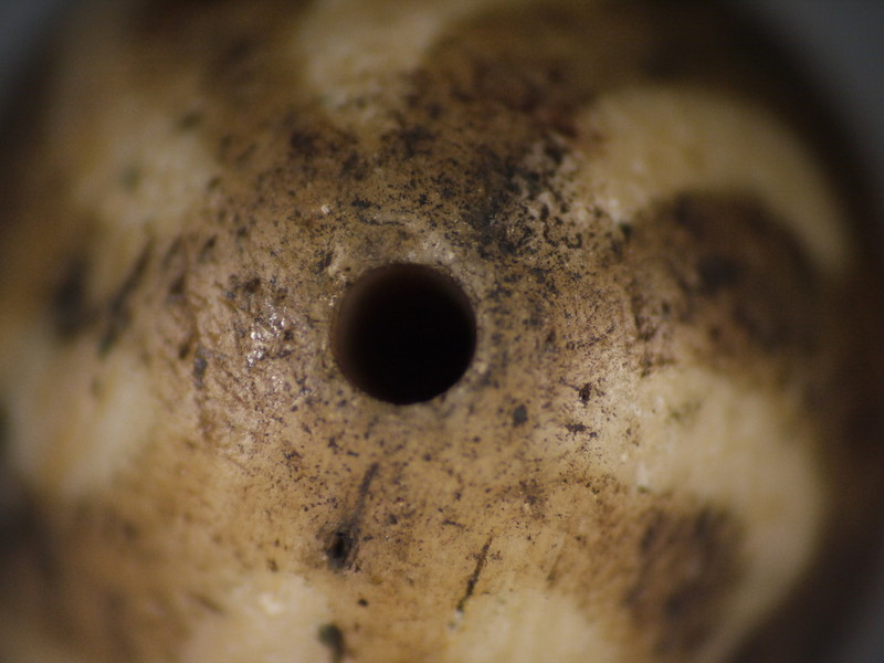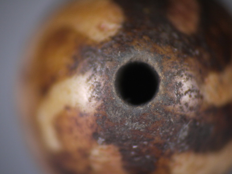 這是第一代老木珠的孔,經過千年穿綴佩帶的樣子!