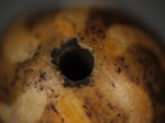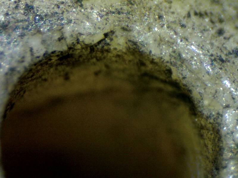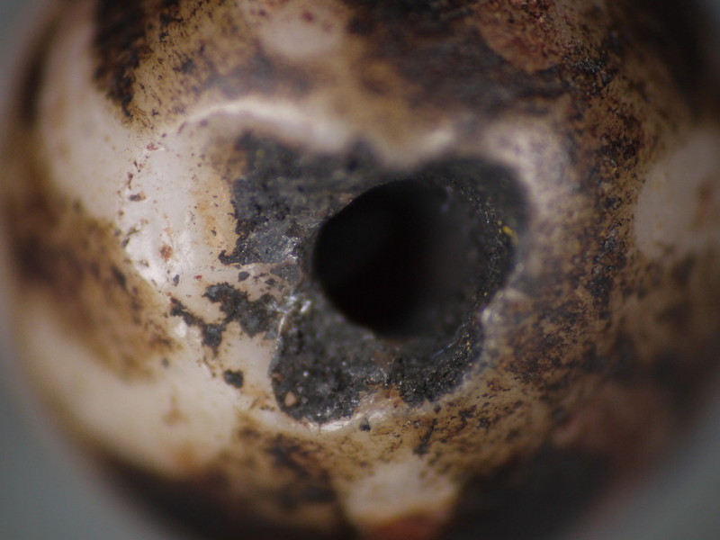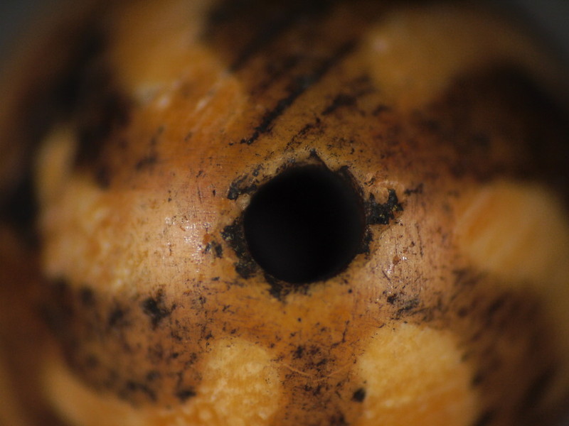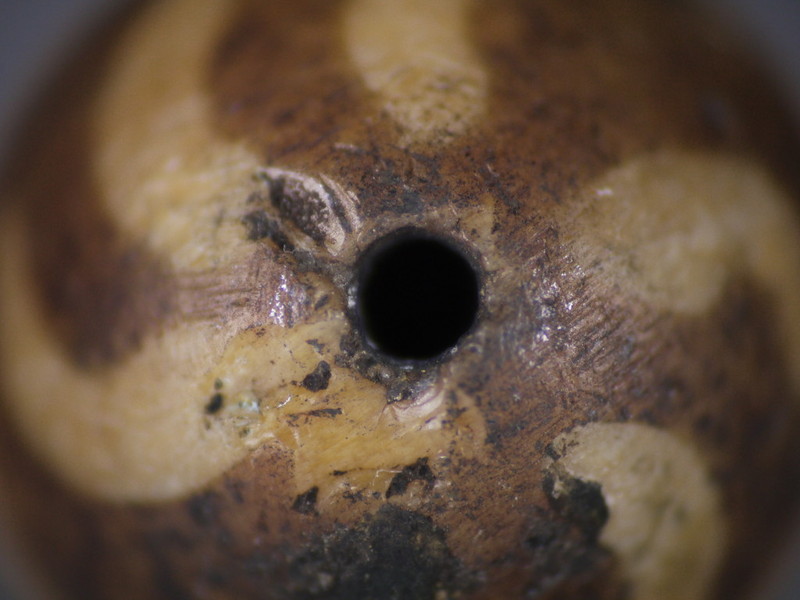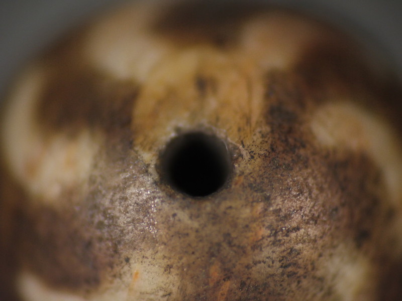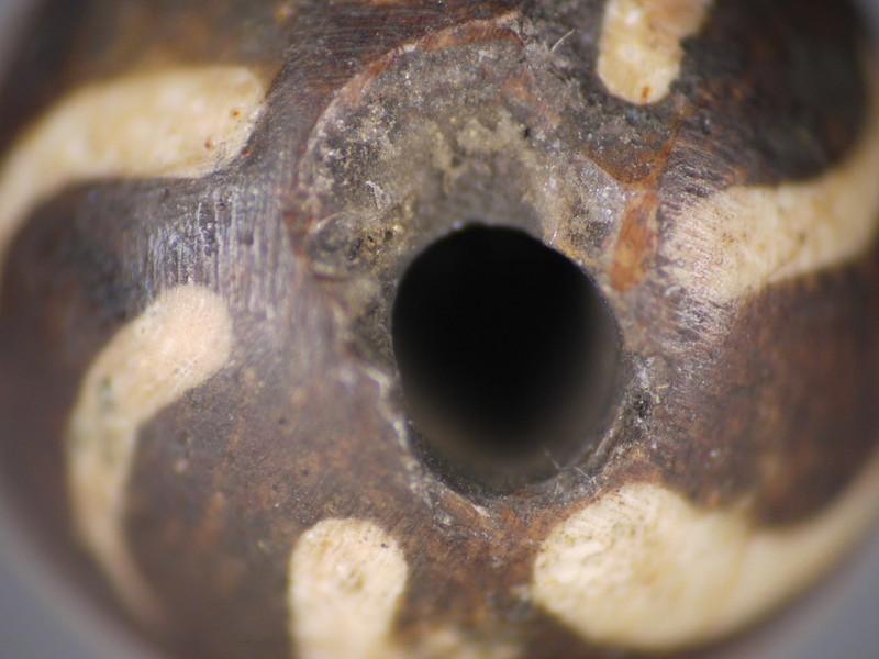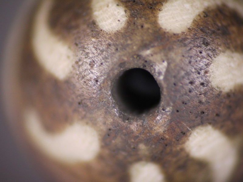 這是第一代老木珠的孔,經過千年穿綴佩帶的樣子!