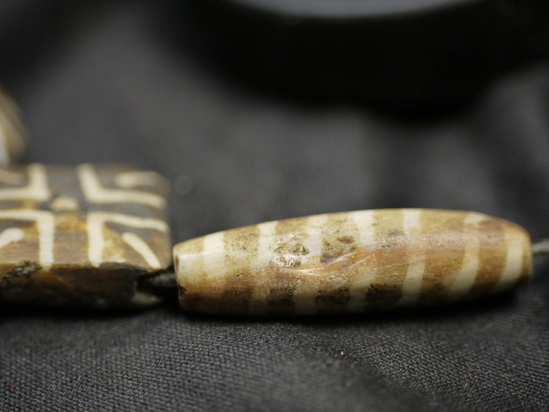 珠子上蚀刻的图案非常精细,这种设计在那一时期的珠子中极其罕见的。珠子的材质是已经高度玉化的化石。如果您想知道什么是真正的邦提克珠,这个就是最好标本