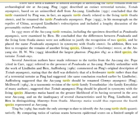 IT IS NOT CLAIMED THAT THE DESIGNS ARE SIMILAR TO OBI, BUT THAT THE TURTLE WAS A VERY IMPORTANT SYMBOL FOR THE ANCIENT CHINESE, SO MUCH SO THAT THEY USED TURTLE SHELLS EXTENSIVELY FOR OBI.WE HAVE RESEARCHED SPECIES THAT WERE PROBABLY USED FOR OBI, AND BELIEVE THAT THE ONES DEPICTED WERE THOSE ACTUALLY USED FOR OBI.THE FACIAL PATTERN IS NOTABLE.