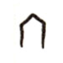 略說: 甲骨文象房屋,「︿」是屋頂,兩豎象牆。