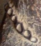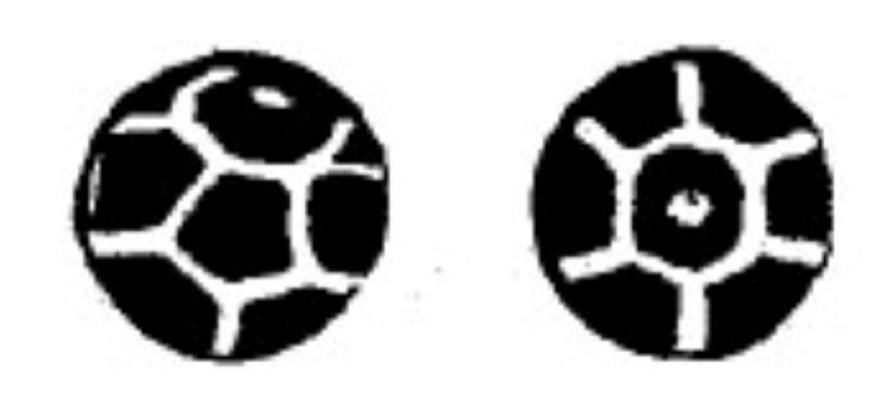 THE LAST 3 PHOTOS ABOVE: COULD THESE POSSIBLY BE EARLY FORMS OF COMPASS/POLE STAR LOCATION, USED IN FENG SHUI? REF THE 'LOTUS LEAF' - BOTH SIDES HAVE MAIN LINES ALIGNED WITH N-S, E-W. POSSIBLY THE 'SHANG CENTRE' IS ALSO REPRESENTED. WE ARE UNSURE WHETHER THERE IS ANY SIGNIFICANCE TO ONE SIDE HAVING A LARGER CIRCLE THAN THE OTHER.