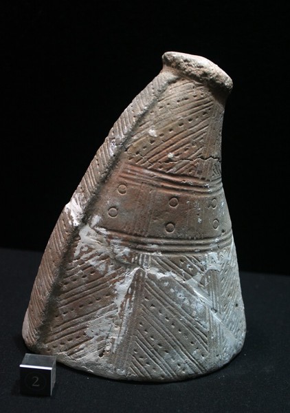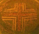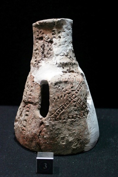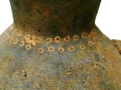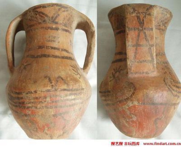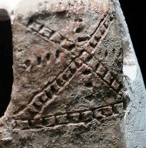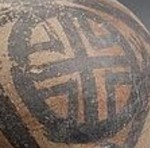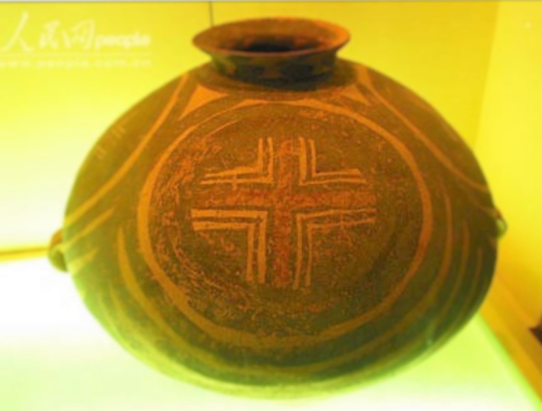 THE POTTERY ABOVE IS FROM THE DAXI CULTURE THREE GORGES MUSEUM. THE DAXI CULTURE LASTED FROM 5000-3300 BC. THIS IMPLIES THAT THE DESIGN IS AT LEAST 5300 YEARS OLD. POSSIBLY THE DESIGN STARTED OUT THIS WAY AND IN LATER GENERATIONS THE VERTICAL LINE WAS DROPPED AND THEN THE HORIZONTAL LINE WAS OMITTED. http://bbs.artron.net/thread-1685943-1-1.html