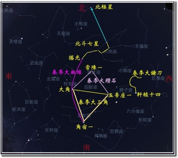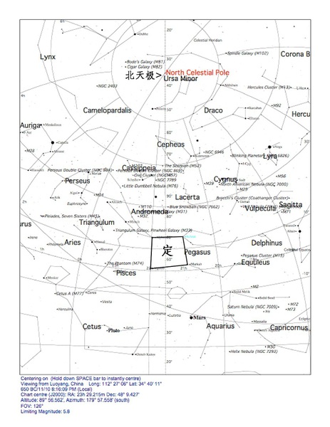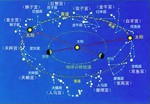 The Regions of the Sky: The Chinese sky was divided into five great regions or palaces called gong 宫. These were equated with the directions north, south, east and west and also with a middle region. The middle region was the most important as it housed among its stars the celestial image of the emperor surrounded by his family and civil and military officials. This part of the sky has constellations such as ‘the prince’, ‘the concubine’, and ‘the throne’ and is a reflection of life on earth.