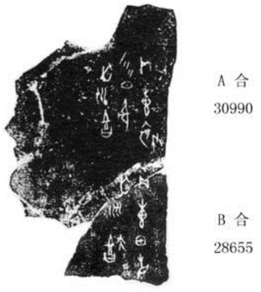這片甲骨實際上是占卜某婦是何時分娩。1、3兩條是問是否是五月上半月分娩;2是問是否是五月下半月分娩;左側4、5、6三條試問是否六月上半月分娩。下部還有兩條無關內容被刪除。就是說上述六條卜辭構成一個完整的占卜,因為下部有空白刻上了其它的內容。也就是說這位某婦分娩預產期是在五月到六月上半月之間的時間跨度內。這裡沒有關于六月下半月的占卜,也就意味著某婦的正常的預產期是五月下半月。同樣見于卜辭的有兩條關于月食的記載: