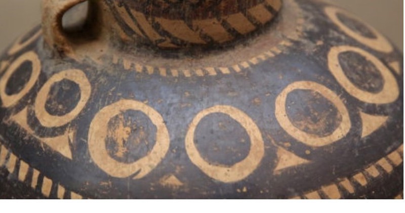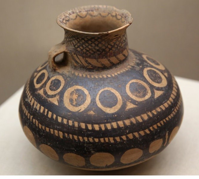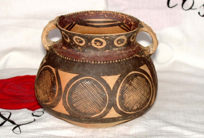 BELOW: THE THREE-LEGGED JAR IS FROM EASTERN QINGHAI, MACHANG/MAJIAYAO CULTURE PERIOD. IDENTICAL PATTERN TO THE BEADS.