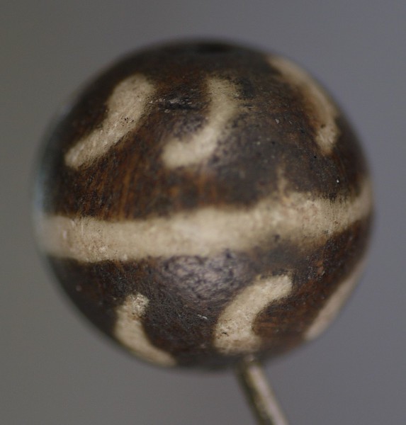 大球珠。有12个屋。在不同方向的所有点。我相信,此珠是用于十二地支(古人用以记录时间的符号)。这意味着12号具有特殊的意义。我相信,项链上的其它长珠被用于计算目的。