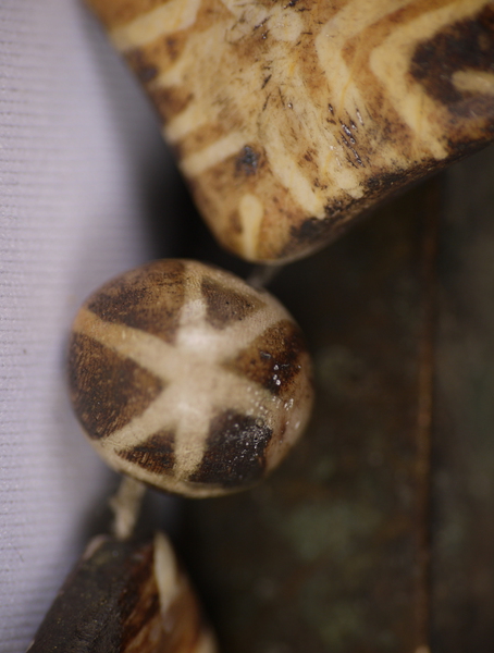 NB THESE BEADS ARE MUCH LARGER THAN OTHERS AND APPEAR TO HAVE BEEN SPECIALLY ORIENTED. A GREAT DEAL OF WORK WENT INTO THEIR MANUFACTURE.
