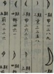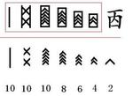 在Rutt(“周易,易经”)是甲骨卦的图片。目前已经有开放和封闭线。开行写像中国的性格8.数字是不同的话,尤其是有更多的数字:“现代”的行下面的例子卦:1,5和7阳,6和8是阴)。数字1,8和5仍写入大致像在顶部卦; 7可以被识别,但要简单得多(其最古老的形式呈十字形,GSR.400); 6看畴昔像房子(GSR.1032),这里只屋顶存在。其激进的是“分化”或8:一个'分',甚至或阴虚数字,比如8。