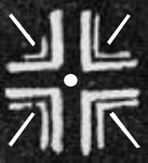 ON THE PREVIOUS PAGE YOU WILL FIND OUR SUGGESTION THAT THE EYES WERE BASED ON DRAGON BACK/TAIL SHANG BRONZE DESIGNS. PERHAPS THE GENERAL DESCRIPTION HERETO GIVEN FOR THIS DESIGN I.E. DIAMOND LOZENGE PATTERN, MAY BE RE-INTERPRETED AS DIAMOND EYE OR ALL-SEEING EYE. FOR COMPARISON PLEASE COMPARE WITH THE NATIVE AMERICAN INDIAN SYMBOL FOR MEDICINE MAN/SHAMAN - ALMOST IDENTICAL. THIS IS DISCUSSED FURTHER IN OUR WEBSITE.