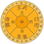“在宇宙而言,商朝设想了一个方形的世界,面向东南西北,围绕核心被称为钟商朝(中心商朝)。除了核心区,尚域划分,理想情况下,分为四个区域,被称为“四大土地”或“土地”,取名为基本方向“。David N. Keightley, " The Shang. ". In Michael Loewe, Edward L. Shaughnessy The Cambridge History of Ancient China: From the Origins of Civilization to 221 B.C. Cambridge University Press. p. 269