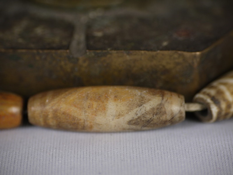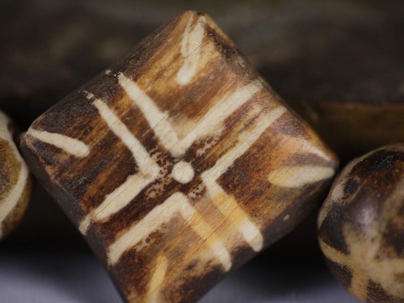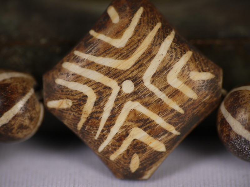 关于方板形制的邦提克珠而言,很多藏家都不是很关注,不过邦主在这里可以告诉大家,方板木珠在原始传世的木珠项链中存世只能达到两颗或者四颗,又因为方板形制的木珠比较容易损坏,所以其实是很难得的特殊图腾之一。