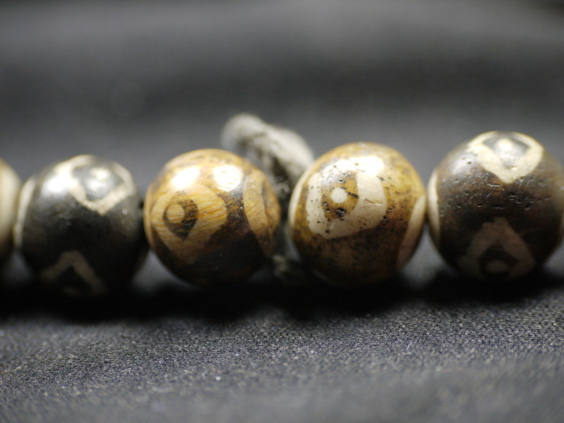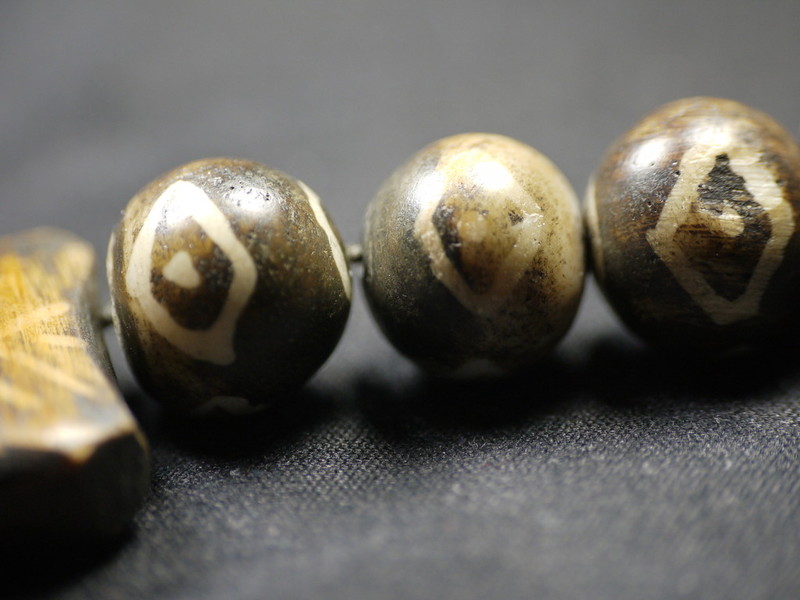 西藏旁系老天珠 老木珠 老邦提克木化石珠 老佛珠配件。