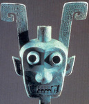 值得注意的是,这种“领羊”的时间在白天而不是黑夜,同样是与死者的灵魂“沟通”,为什么选择的时间不同?这主要因为,在人们的观念中,“葬礼”是与死者灵魂告别,而上坟时的“领羊”则有更多祭祀的意义,这与古代羌族祭山神的性质大概相同,就是说,长眠在地下的祖先灵魂已经回到了“家族神界”里,既然是神,当然就不同于当初的“鬼魂”了,可以见太阳。至今,在甘肃临夏有些山区,还有人家供奉着羊头人身的“家神”,显然是羌族古俗的遗存。“羊头人身”简直就是一个充满原始文化的“美”字!羌族以羊为图腾,创造了很多关于羊的风俗文化。古文的“羌”字,即是“羊”、“人”二字的组合。《说文》曰:羌“从人从羊”。可见当时羌族的畜牧业生产水平,已经为世所知。藏羊是羌族驯养成功最早的家畜,它是远古栖息于高原草地的一种“盘羊”,羌族把这种古代野羊改良成为绵羊。我国最早创造的羊字,就画盘角、大眼的西藏绵羊的头像。在原始社会里,“冠羊”往往是地位和权力的象征,头戴羊状装饰物以示其神秘和权威,多为部落首领或酋长所独享。凡崇拜羊图腾的民族,每年都要举行播种、祈年、狩猎、诞生等庆典或巫术仪式。在这些仪式上,他们会扮成羊祖先的样子,或头插羊角,或身披羊皮,或头顶羊头,更甚者会把整只羊捆绑在身上,大蹦大跳,大唱大念,是一种最为原始的歌舞和诗歌的雏型。这种“冠羊”习惯,后逐渐演变出“羊人为美”与“羊大为美”。美的初始含义是指冠戴羊型或羊头装饰的大人,“大”为正面站立的人;“羊”为图腾扮演、图腾乐舞、图腾巫术的装饰物。这在甲骨文、金文等“美”字的象形字形中可窥见一斑。 美,既包含审美、鉴赏的含义,也具有口味、品尝的实际,既有服饰审美文化--如“羊人则美”,又包含饮食审美文化--如“羊大则美”。并由“观念联想”导致并产生了生理的、两性的欲望美--即“色”“味”“声”等感性形式所获得的情感上的愉悦之美,衍生出种族保存本能的异性相爱及其过程中的心灵美。在他们的朦胧意识里,模糊而又固执地认为,这种穿戴“羊”物冠饰的啸歌腾踏,势若飞旋,是一种巨大的审美情趣。这种审美情趣与他们自己虚构的神灵世界密切相连,是促使他们猎获丰赡、六畜兴旺、人丁昌盛的源泉,是集体、凝聚、秩序、智慧等行为的启蒙和必须。