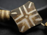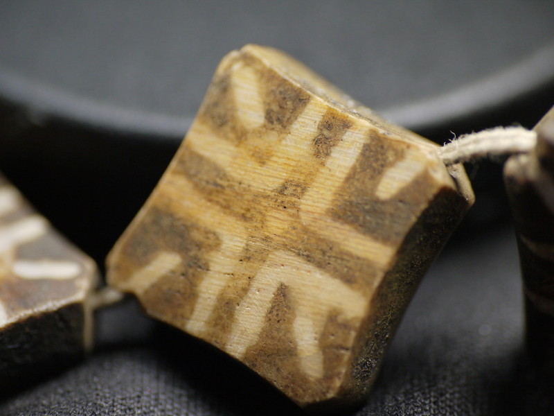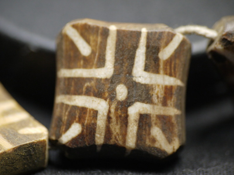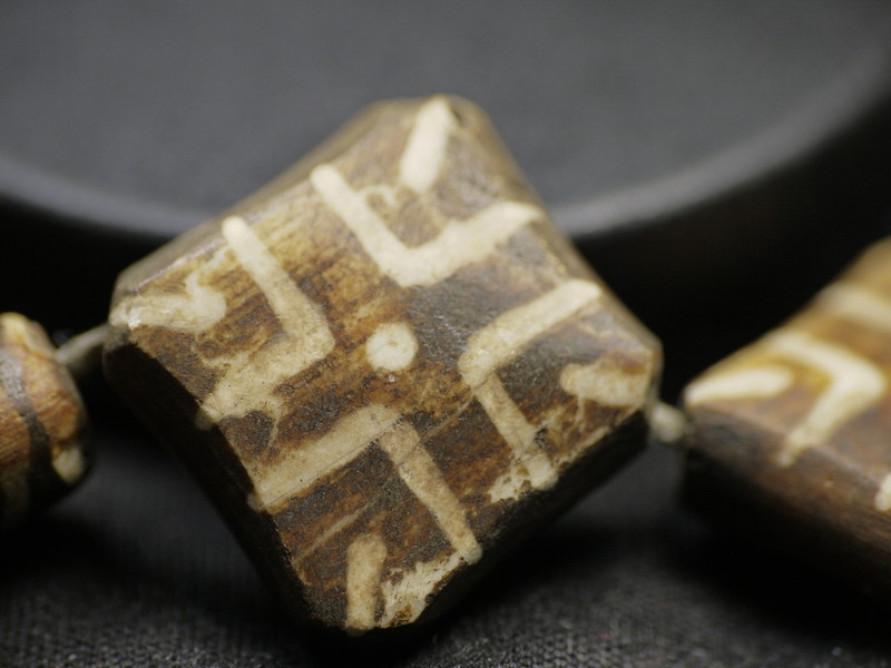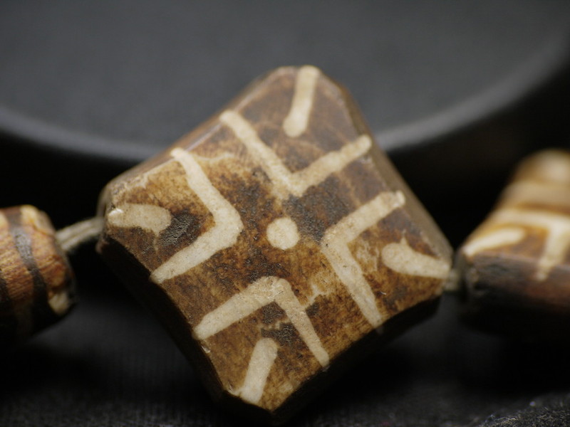 关于方板形制的邦提克珠而言,很多藏家都不是很关注,不过邦主在这里可以告诉大家,方板木珠在原始传世的木珠项链中存世只能达到两颗或者四颗,又因为方板形制的木珠比较容易损坏,所以其实是很难得的特殊图腾之一
