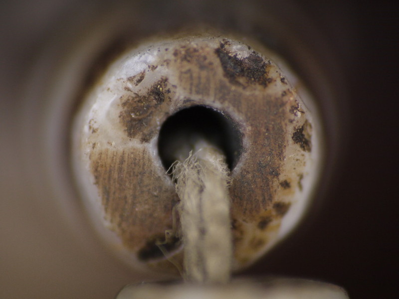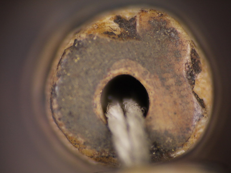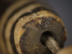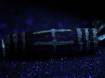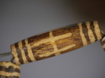 25。桶(黑与白线,三条水平线的每一端和两个锯齿形的线的中间,长30毫米,中间直径11毫米,端部直径8毫米):Maingmaw。有没有螺纹孔,严重风化的表面灰褐色的颜色已经褪去。被挖出来在老城区的Maingmaw,由村民üHLA昂(吴昂MYINT1991)。